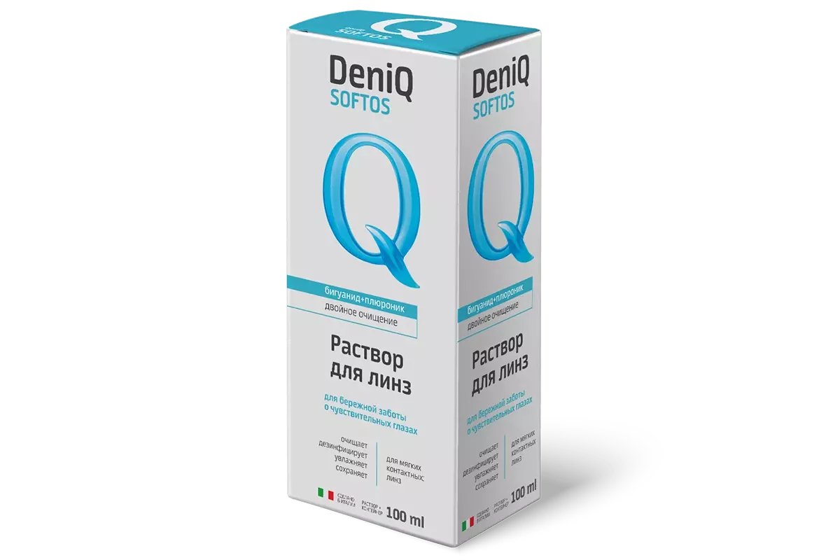 DenIQ Softos — итальянский многофункциональный раствор для ухода за всеми типами мягких контактных линз.